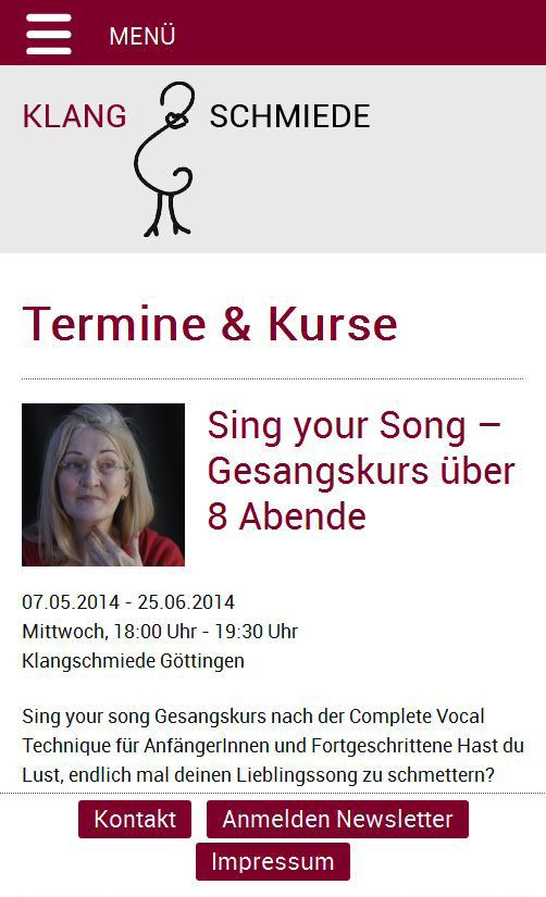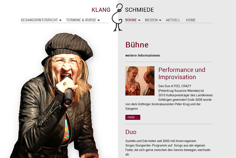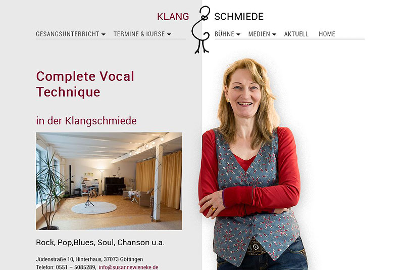 Die Website der Klangschmiede Göttingen der Sängerin und Gesangslehrerin Susanne Wieneke sollte neu gestaltet werden. Die Anforderungen waren: