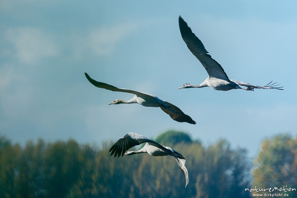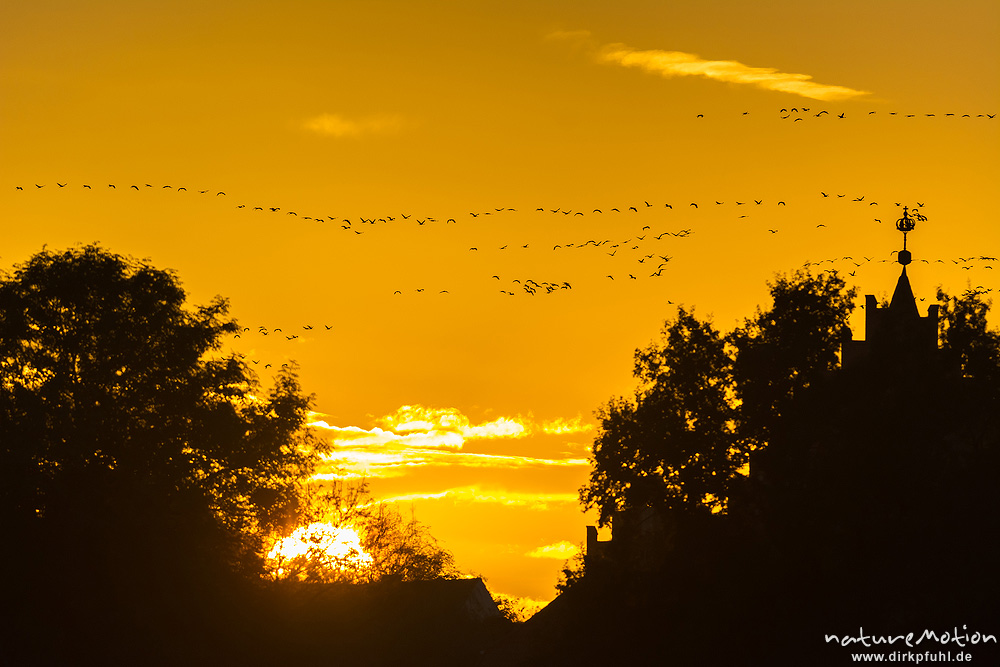 Vom späten Nachmittag bis zum letzten Tageslicht erfolgt dann der Rückflug zum Schlafplatz. In schier endlosen Ketten ziehen dann über 100.000 Kraniche über den Himmel.