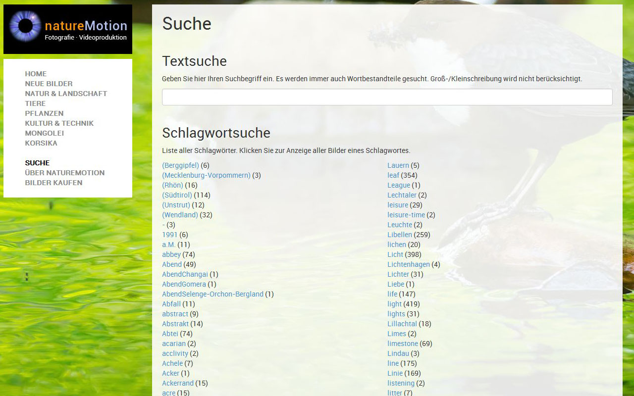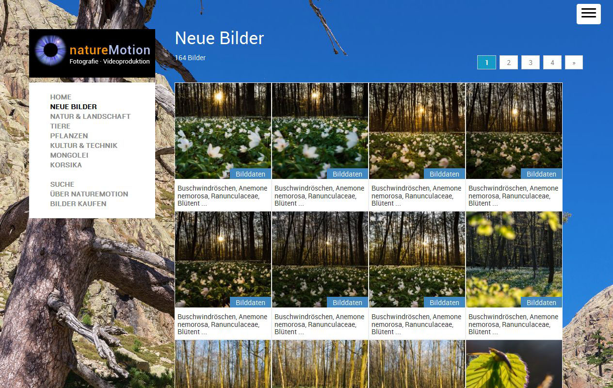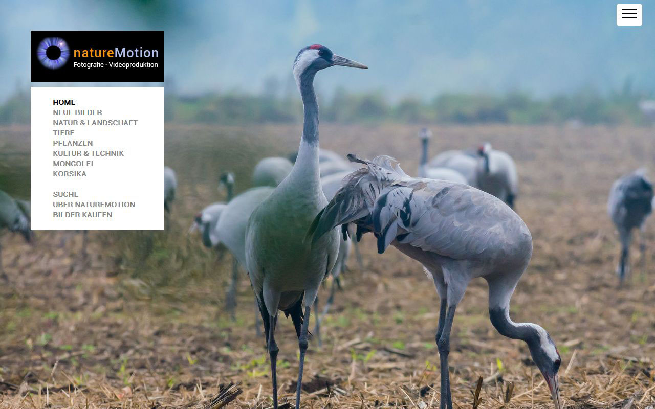 Das Bildarchiv natureMotion sollte eine neue Gestaltung verpasst bekommen, die die Fotos auf den aktuell verbreiteten Bildschrimgrößen besser zur Geltung bringt und auch auf mobilen Geräten funktioniert.