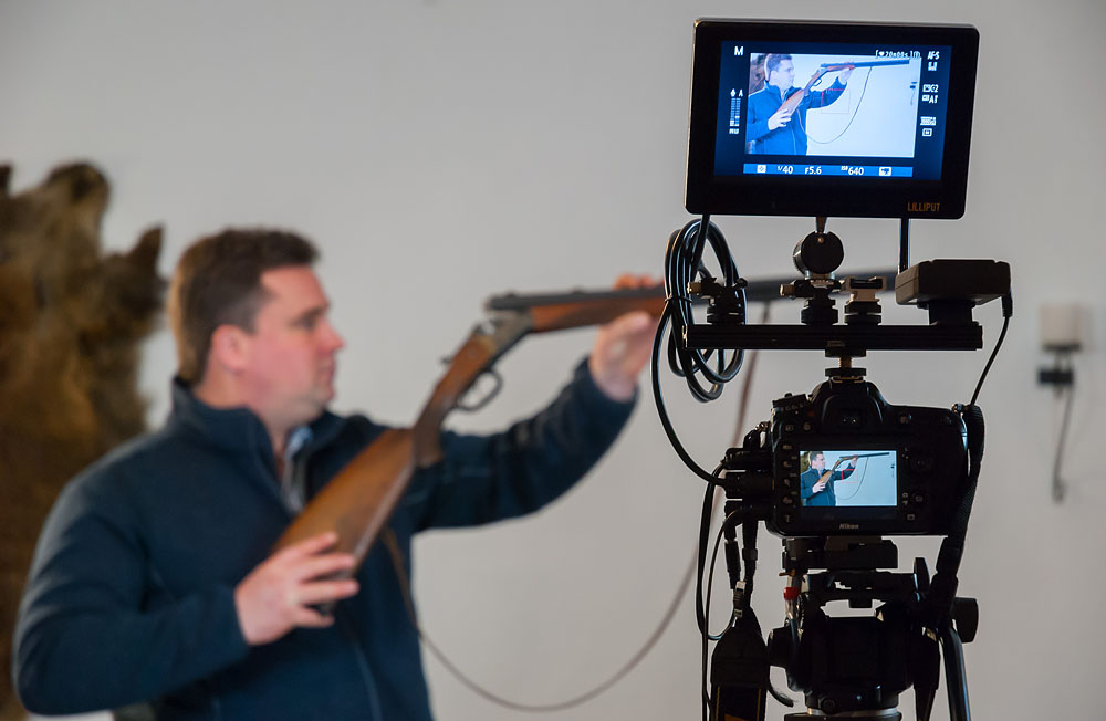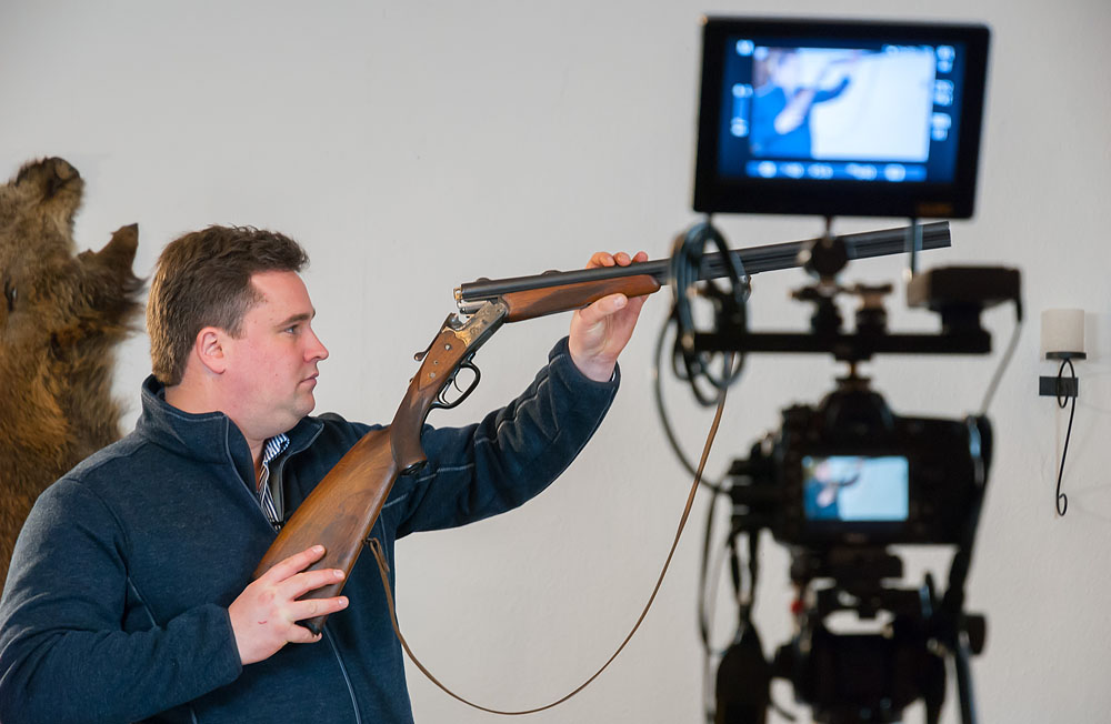 Im Aufnahmestudio demonstriert und erklärt der Inhaber der Jagdschule Südniedersachsen, Thiemo Gerhardt, detailliert den richtigen Umgang mit gängigen Jagdwaffen, so, wie er in der Prüfung vorzuführen ist. Dabei wurden alle wichtigen Einzelheiten genau aufgenommen und zusätzliche Detail- und Nahaufnahmen produziert.