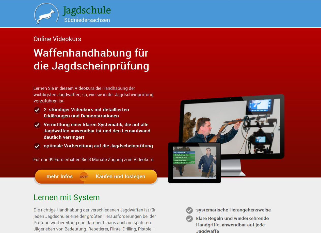Die Videoaufnahmen wurden dann zu Lehrfilmen für die einzelnen Jagdwaffen und die einzelnen Handhabungsschritte zusammengeschnitten. Über die Webseite der jagdschule Südniedersachsen kann nun ein kostenpflichtiger Zugang zum vollständigen Videokurs erworben und die Videos für den bezahlten Zeitraum online angeschaut werden.