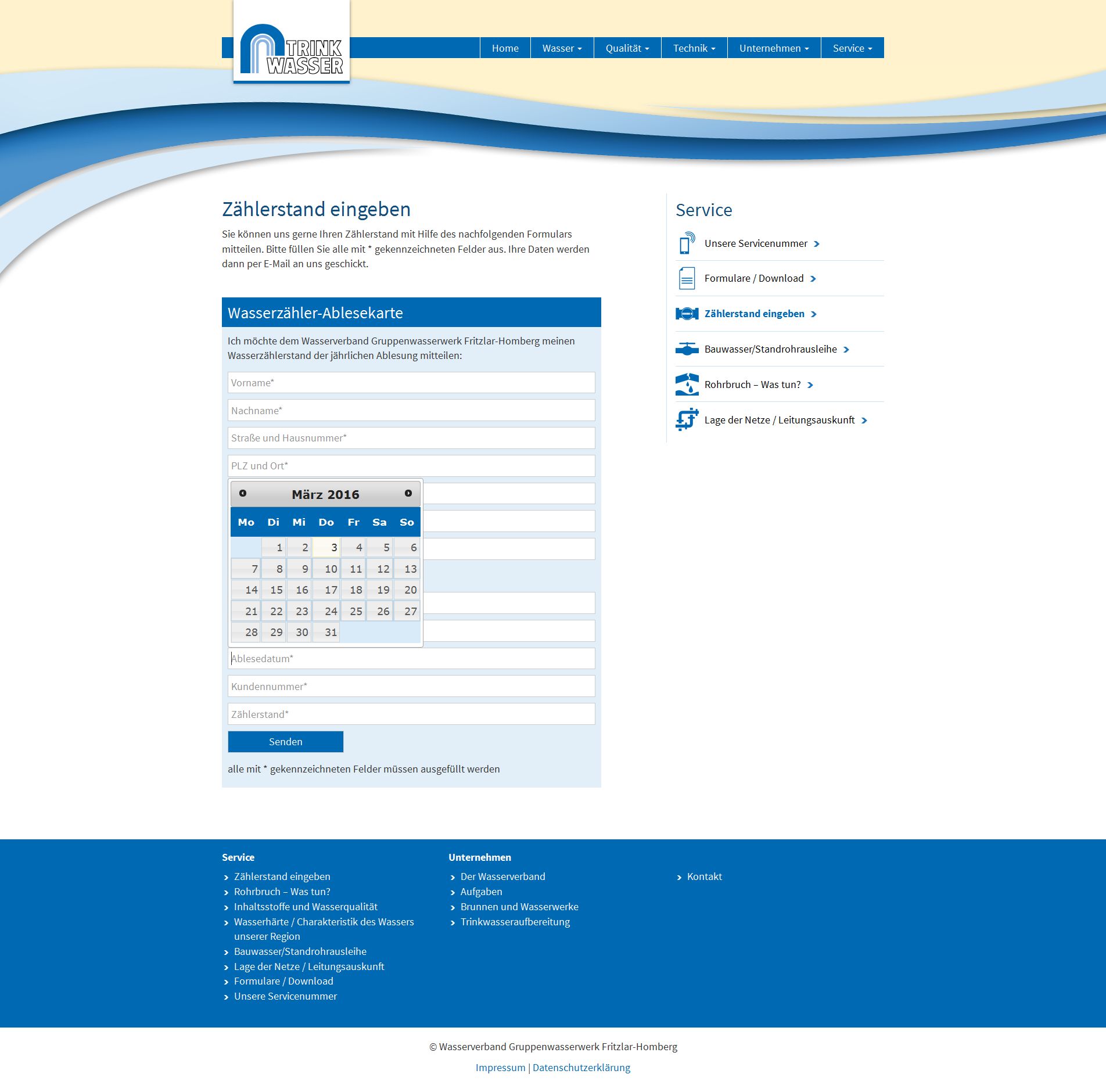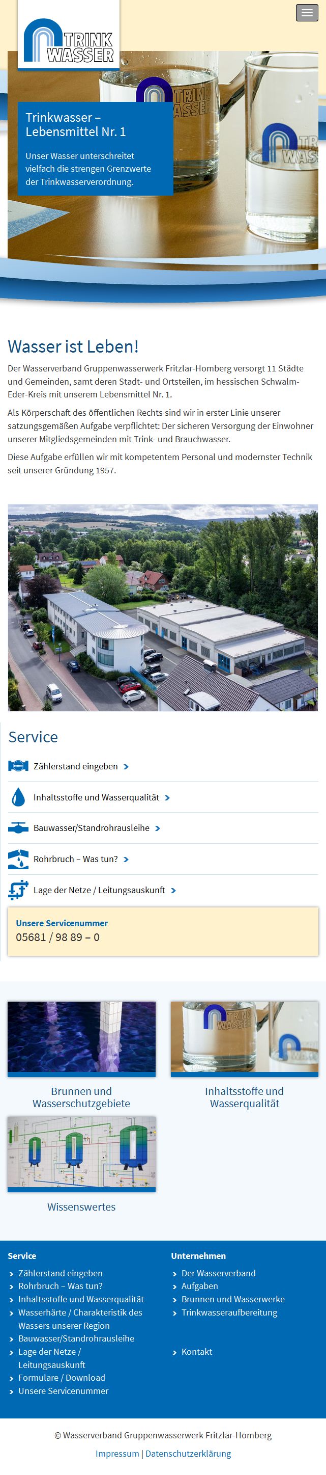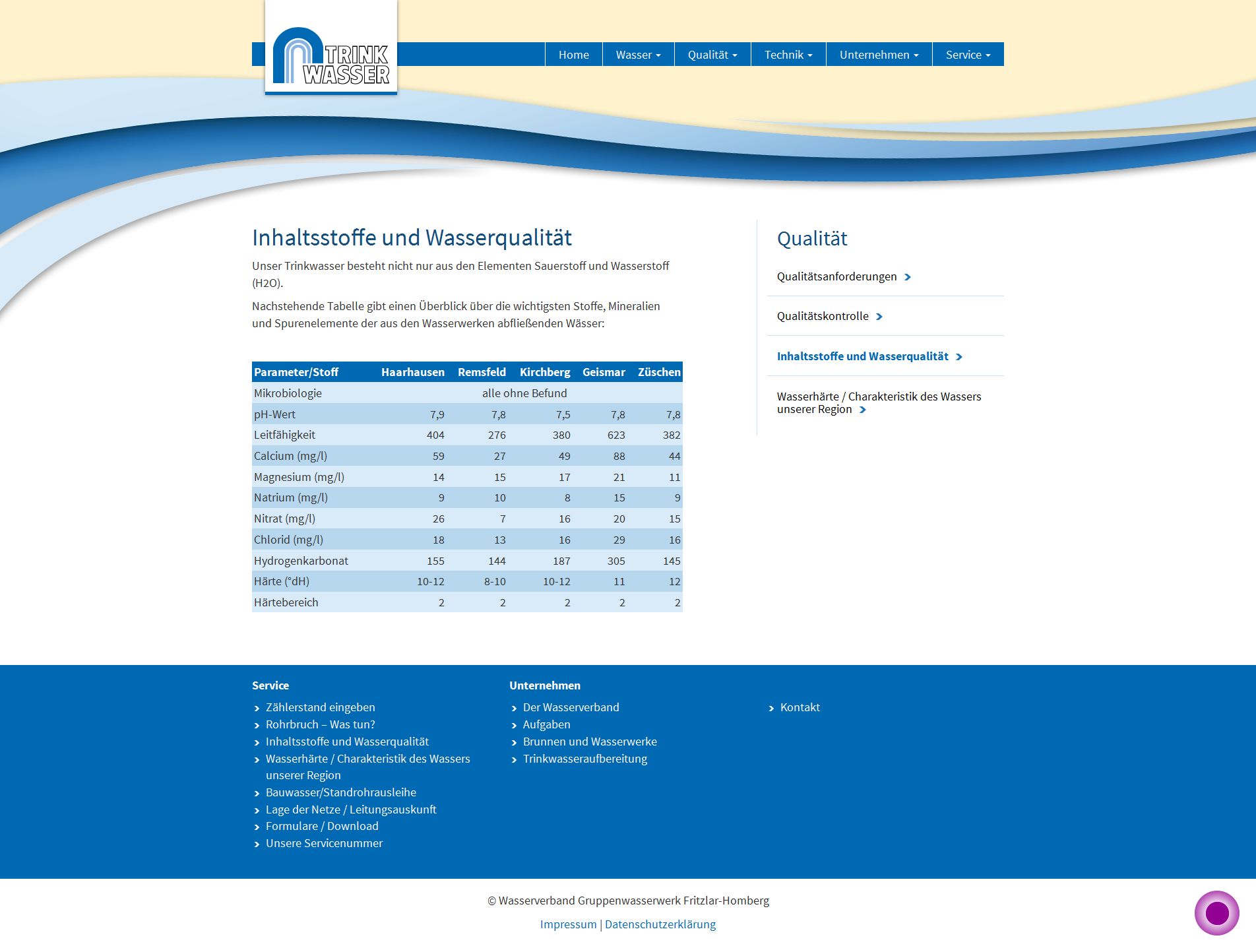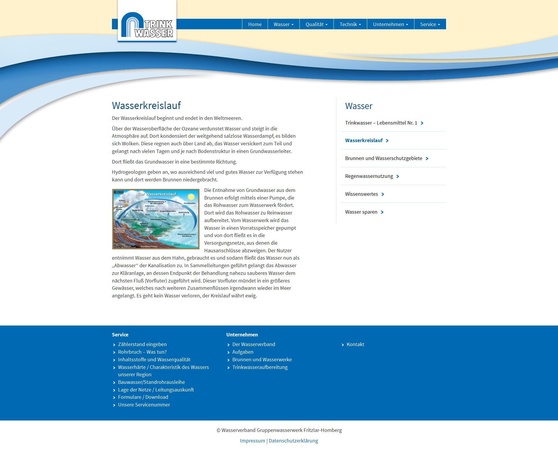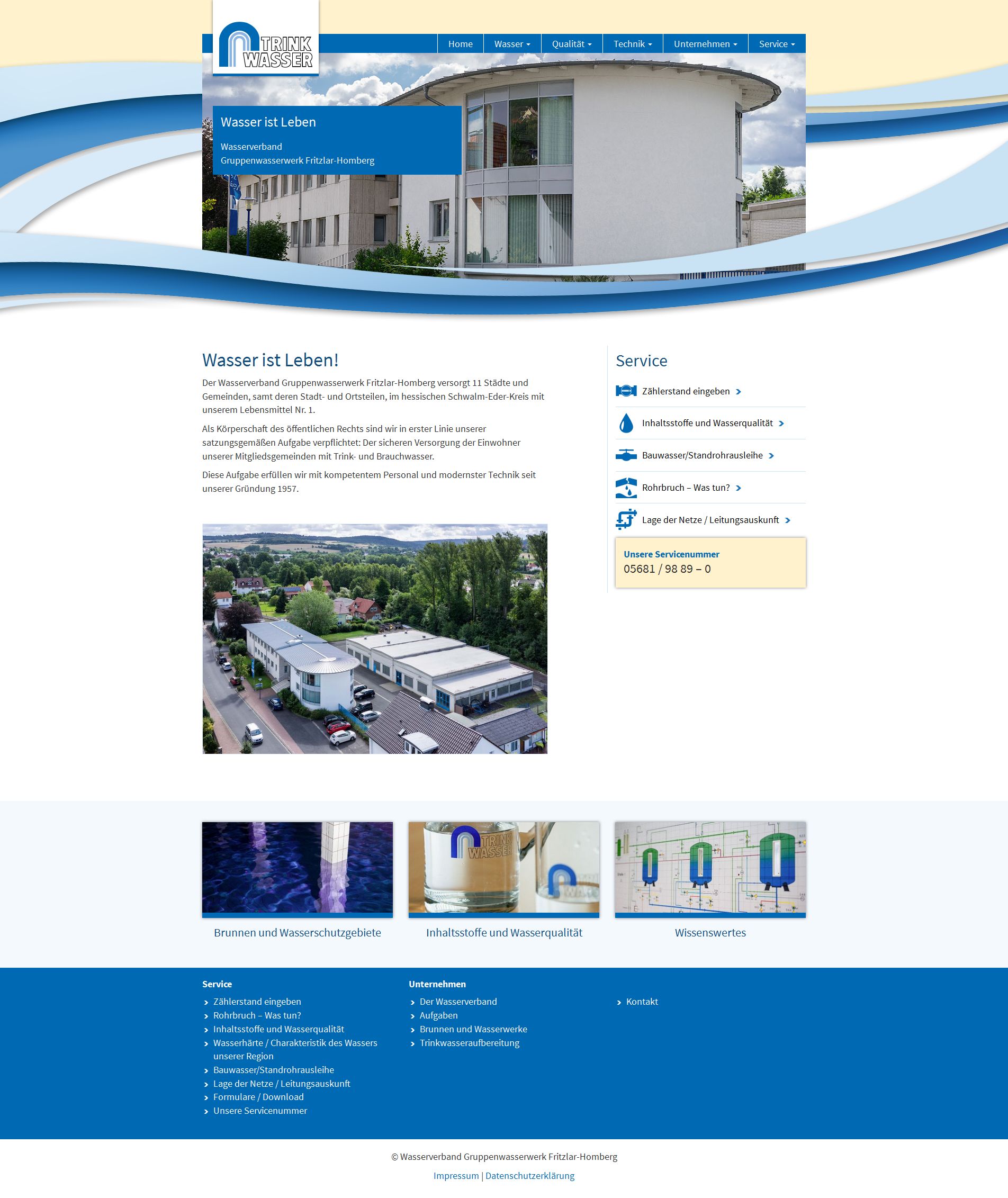 Als Körperschaft öffentlichen Rechts versorgt der Wasserverband Gruppenwasserwerk Fritzlar-Homberg die Einwohner von 11 Gemeinden des Schwalm-Eder-Kreises mit Trink- und Brauchwasser. Die Internetpräsenz des Verbandes sollte neu gestaltet werden und die Öffentlichkeit ausführlich über dessen Aufgaben, Dienstleistungen und Serviceangebote informieren.