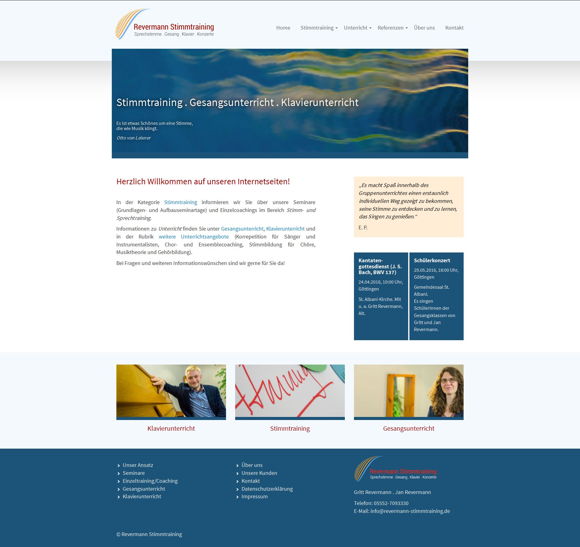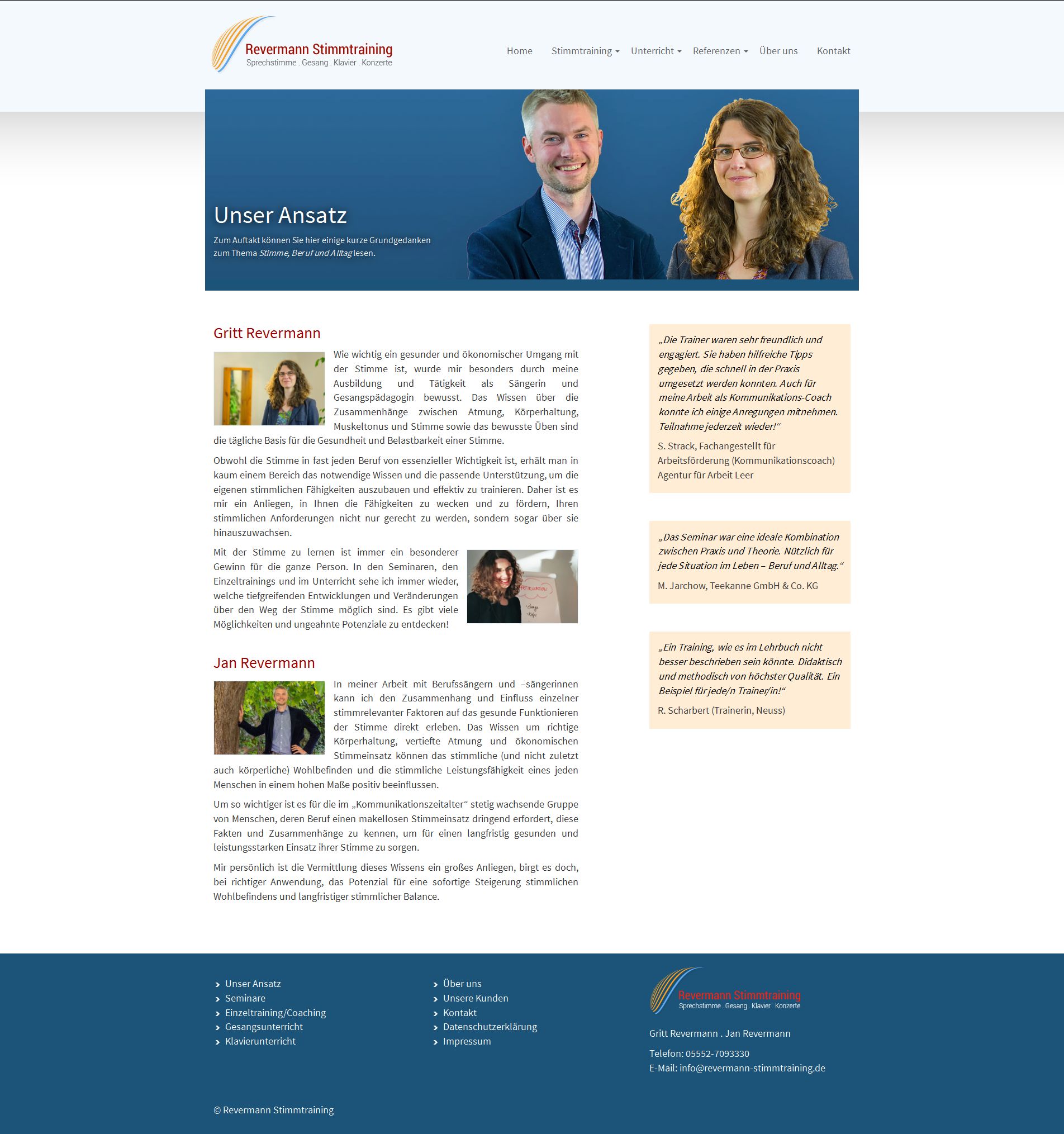 Nach der Neuorganisation des Unternehmens benötigte Revermann Stimmtraining eine von Grund auf neu gestaltete Internetpräsenz, auf der die vielfältigen Angebote dargestellt werden.