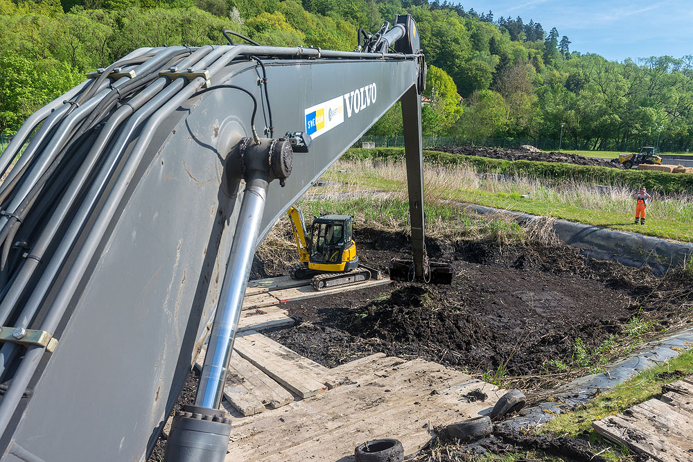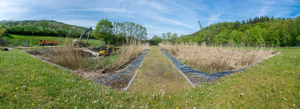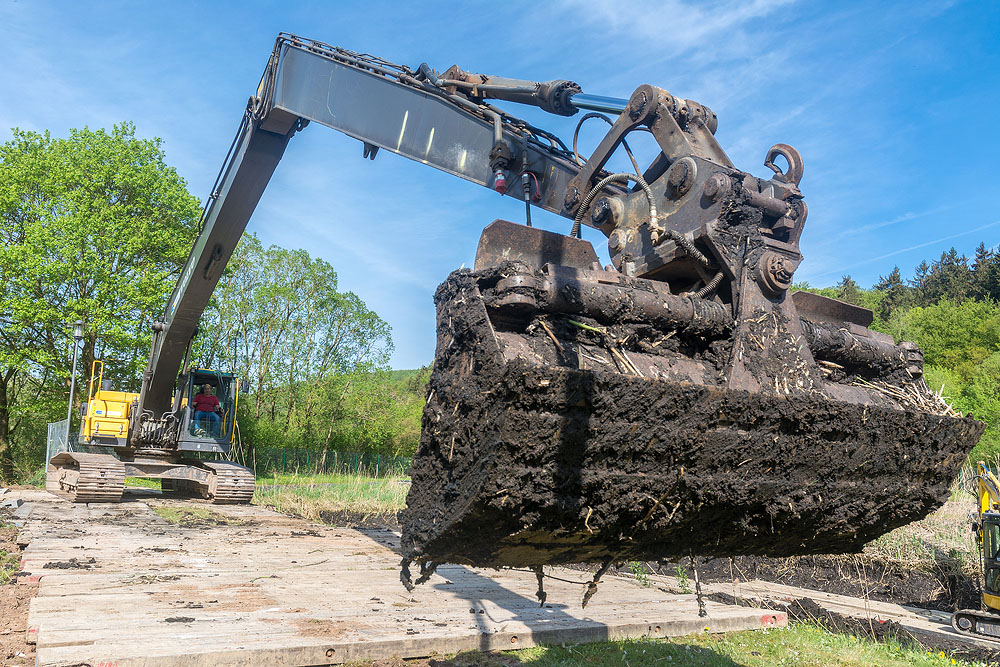 Ein besonderer Termin waren die Arbeiten an einer Klärschlammvererdungsanlage. Hier wurden die Schilfbeete aufgrund ihrer vertieften Lage mit einem Langarmbagger ausgebaggert.
