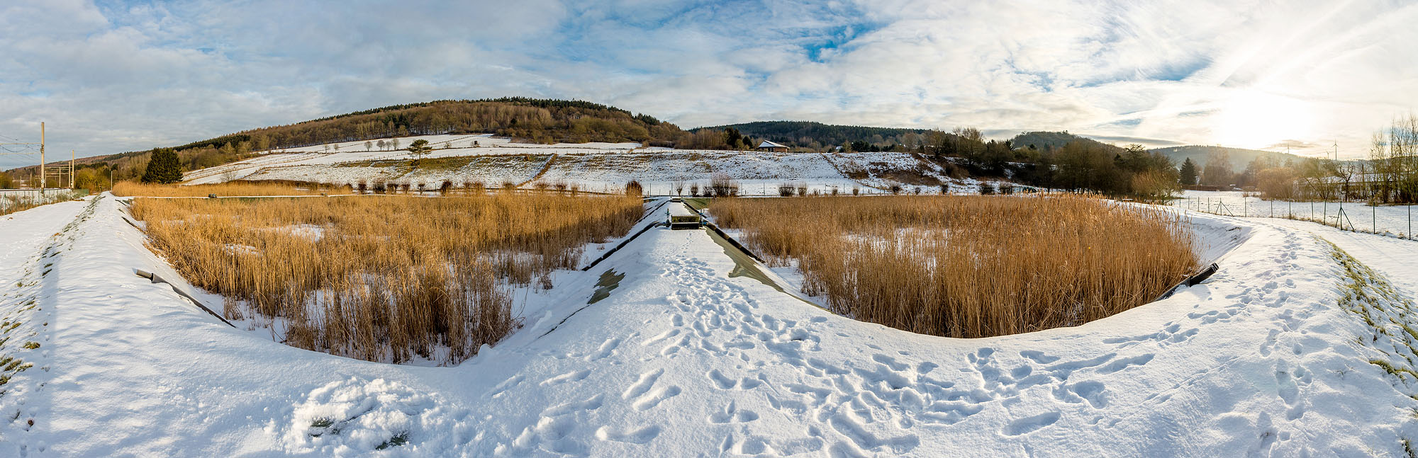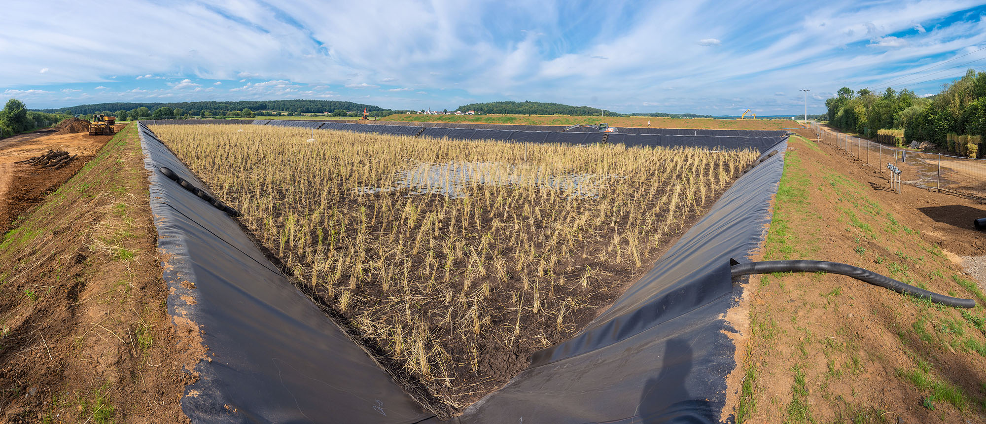 Fotografisch ansprechende Aufnahmen von Klärschlammvererdungsanlagen sind alles andere als einfach. Die Becken bestehen aus einem rechtwinklig aufgeworfenen Erdwall und sind mit Teichfolie ausgelegt. Darin wächst das Schilf in dichtem Bestand von geicher Höhe. Dem Fotograf bietet sich damit ein eintöniges, langweiliges Motiv ohne interessante Strukturen oder technische Einrichtungen. Die Anlagen kommen fast ohne Wartung aus und sind daher überwiegend menschenleer. Gelegen oft in unmittelbarer Nähe einer Kläranlage, gibt die umgebende Landschaft in der Regel auch nicht viel her.