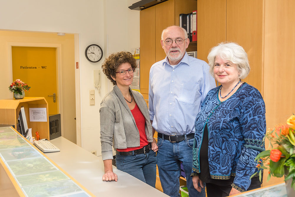 Im laufenden Betrieb einer gut besuchten Arztpraxis ist es nicht leicht, genügend Zeit und Ruhe für gute Fotoaufnahmen zu finden. Ein erstes Shooting wurde deshalb an einem der halbjährlich stattfindenden „Organisationstage“ durchgeführt, an dem zwar das gesamte Personal anwesend, die Praxis für Patienten aber geschlossen war.
