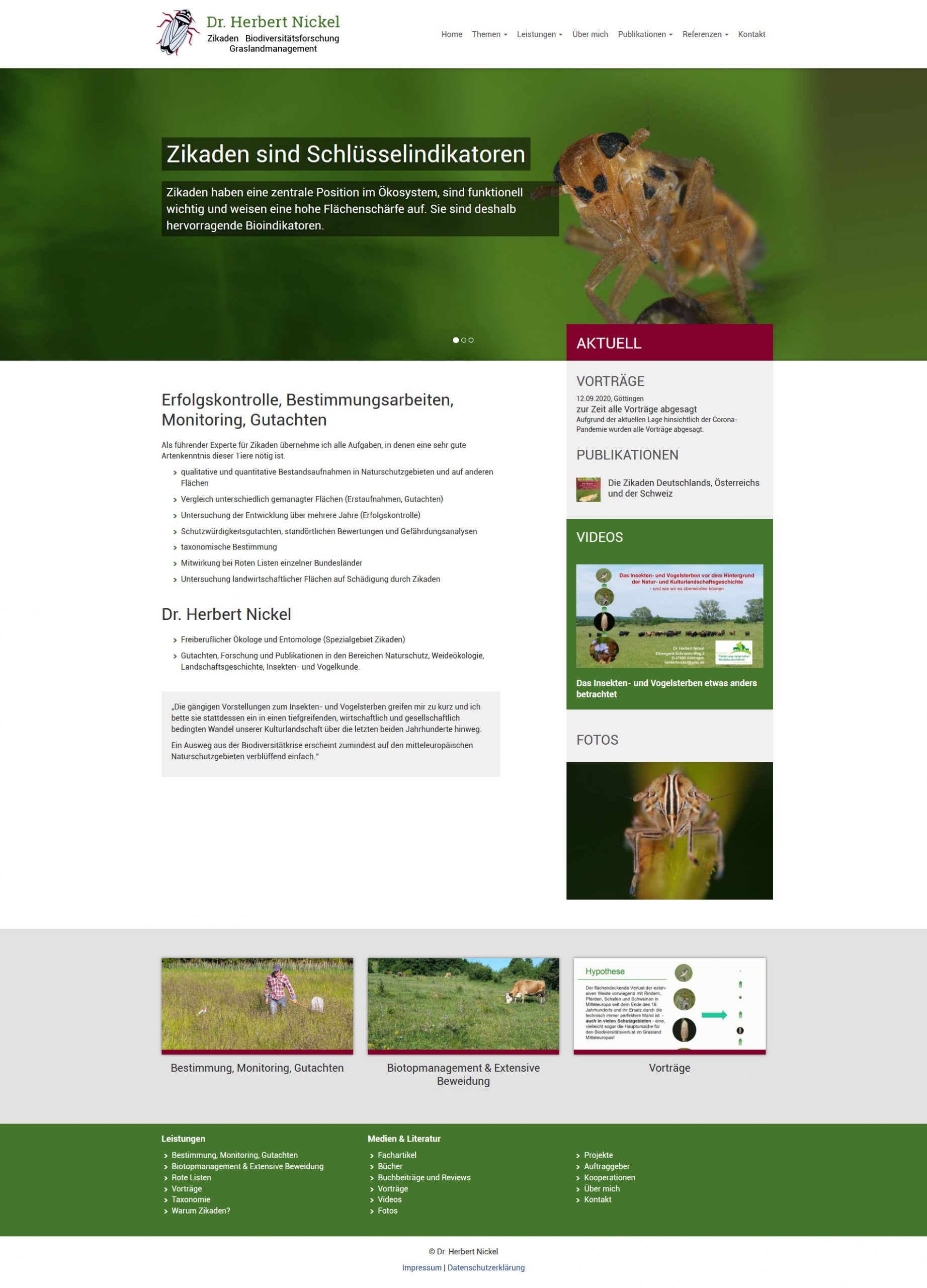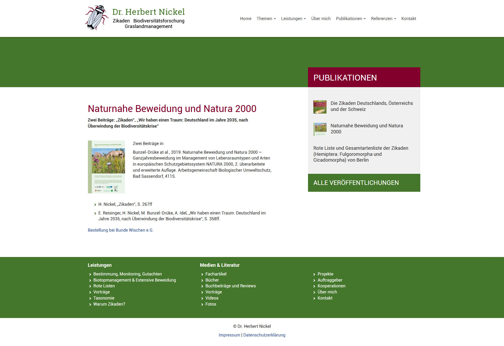 Die Internetpräsenz sollte sowohl die wissenschaftliche Tätigkeit mit ihren zahlreichen Publikationen darstellen, als auch den Beitrag Dr. Nickels zur Entwicklung eines effektiven und zielorientierten Naturschutzes.