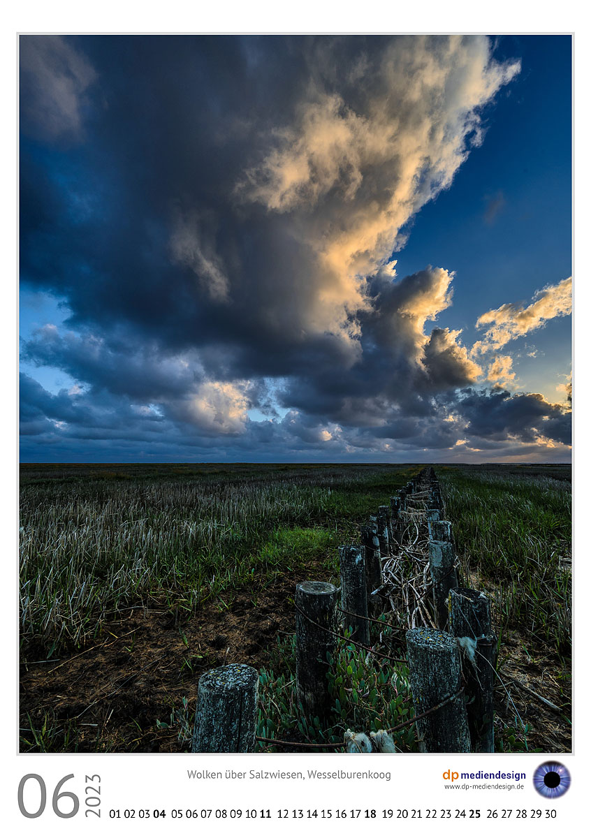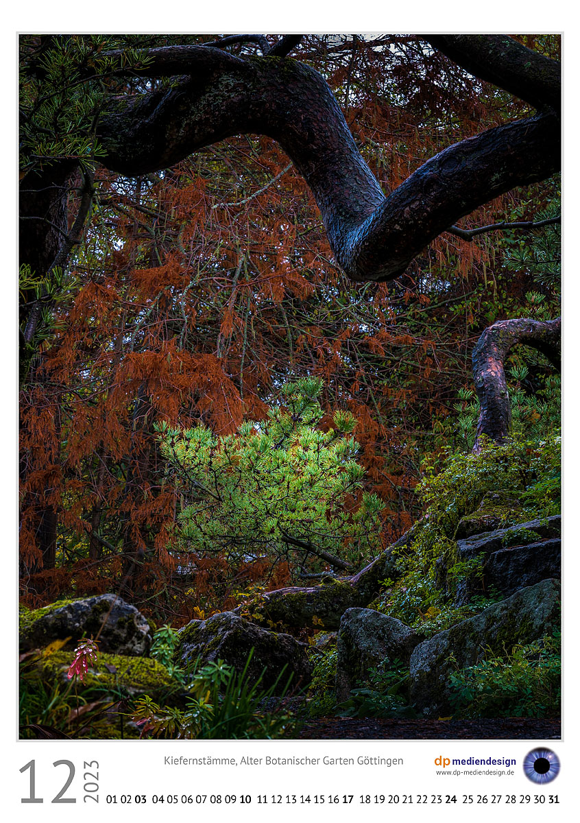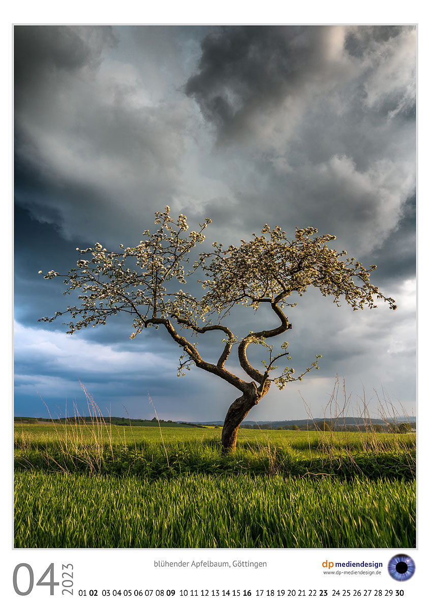 In diesem Jahr ist der Kalender etwas anders als sonst, und dass nicht nur, weil er im Hochformat gestaltet ist. Vor einiger Zeit entdeckte ich die Arbeiten der italienischen Landschaftsfotografin Isabella Tabacchi, die mich sehr beeindruckten. Ihre Fotos zeichnen sich durch starke Kontraste und eindrucksvolle Lichtstimmungen aus und erreichen so eine intensive, emotionale Wirkung. Oft dominiert ein markanter Vordergrund und gibt dem Foto zusätzliche Tiefe. Grundlage der starken Bildwirkung ist eine spezielle Aufnahmetechnik und eine umfassende Ausarbeitung. Um ein Foto mit starkem Vordergrund in seiner ganzen Ausdehnung scharf abbilden zu können, müssen mehrere Einzelbilder des selben Ausschnitts mit unterschiedlicher Schärfeebene kombiniert werden. Und die Ausarbeitung starker Bildkontraste erfordert es, einzelne Bildbereiche selektiv zu bearbeiten.