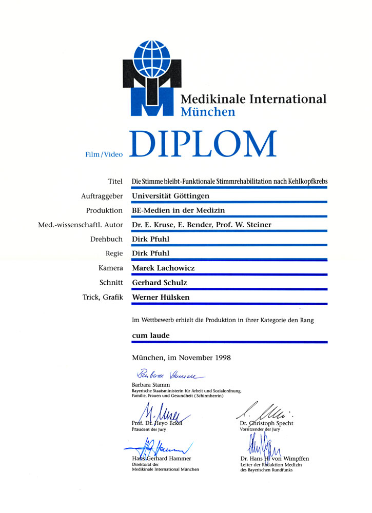 Der Film informiert Patienten über die Behandlungsmöglichkeiten bei Kehlkopfkrebs. Im Mittelpunkt des Göttinger Konzepts steht dabei der weitgehende Erhalt der Stimme.